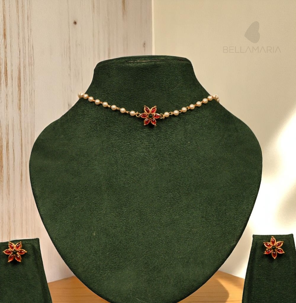 FLORAL PENDANT PERAL CHOKER-NE0094