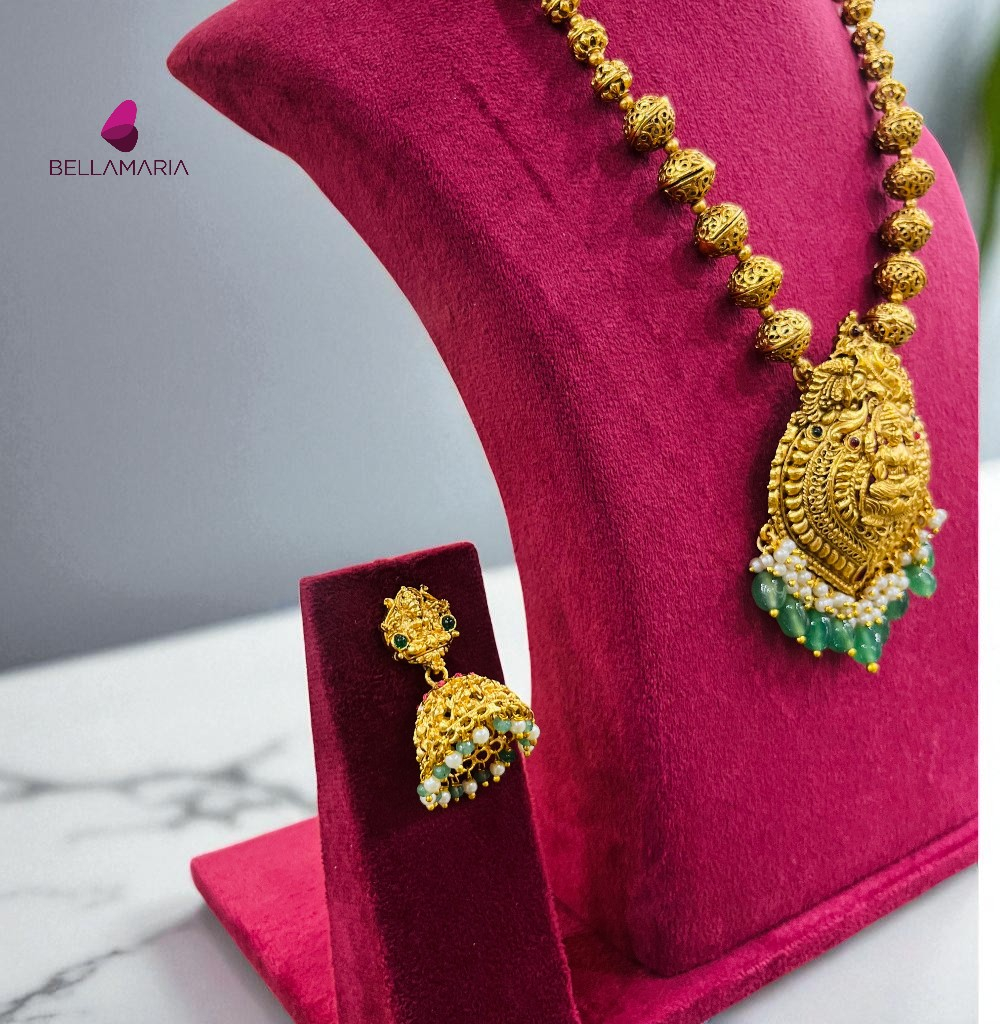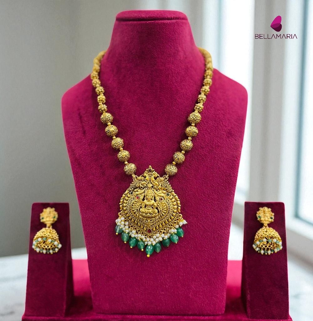 SARASWATHI PENDENT GOLDEN BEAD CHAIN-NE0045