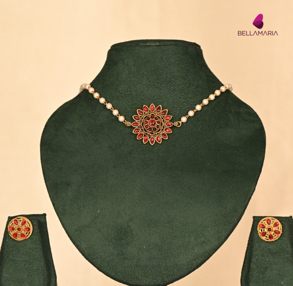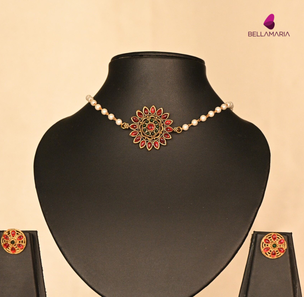 FLORAL PENDENT WITH PEARL CHOKER-NE0155